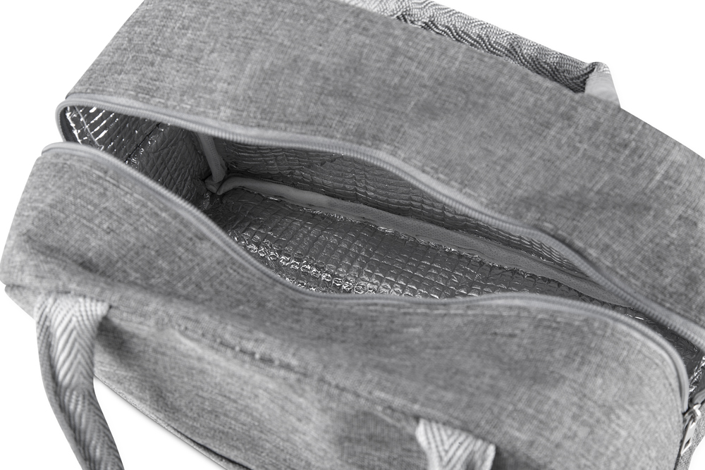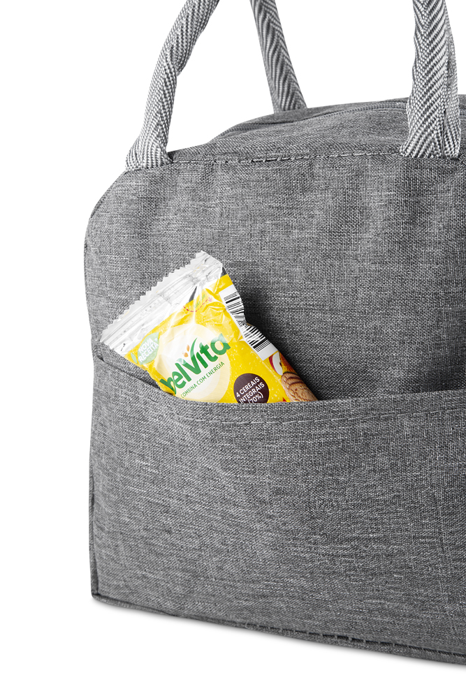 Bolsa térmica costurada, feita em poliéster 300D na parte externa e manta térmica interna. Modelo sem solda, com bolso frontal funcional e capacidade aproximada de 5 litros. Dimensão do Produto: 20x24x11cm