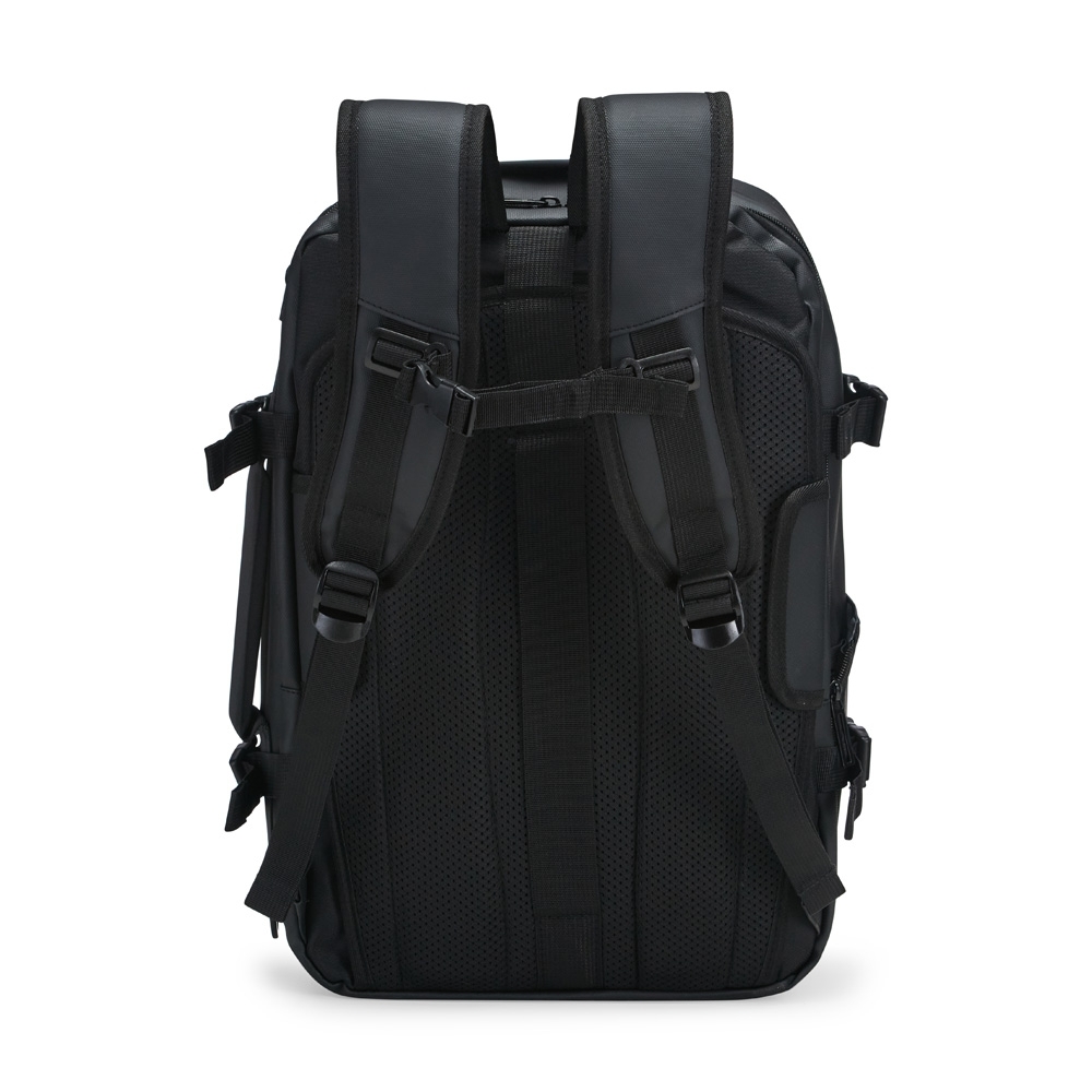 Mochila em nylon com camada de PU impermeável e capacidade para até 28 litros. Possui compartimento principal em poliuretano termoplástico, divisória para notebook de até 15,6”, bolsos frontais, lateral em tela e traseiro. Conta com abertura expansível, fivelas laterais ajustáveis e alças acolchoadas em espuma respirável, além de alça lateral para transporte vertical e alça de ombro ajustável em nylon. Altura : 44 cm Largura : 30 cm Profundidade : 8,5 cm