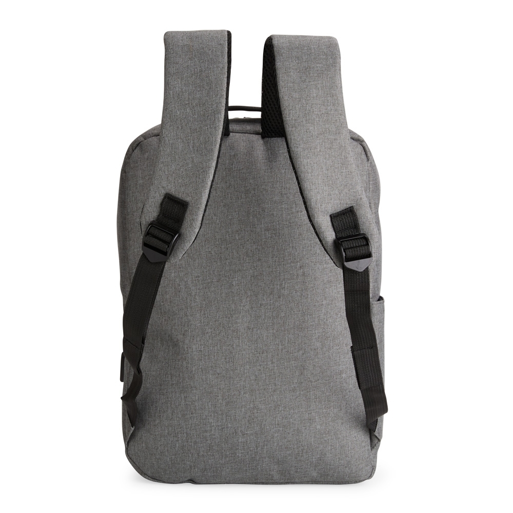 Mochila personalizada confeccionada em nylon Oxford impermeável, com fechamento em zíper e puxadores com detalhes em nylon e plástico. Possui capacidade de até 14 litros e compartimento interno principal com bolsos de tamanhos variados, além de divisória para notebooks de até 15,6 polegadas. Conta com três compartimentos externos, sendo um deles com abertura lateral, bolso lateral adicional e porta USB integrado. Inclui alça de mão em poliéster 210D e alças para as costas em tecido respirável, oferecendo mais praticidade e conforto no transporte. Altura : 41 cm Largura : 28,5 cm Profundidade : 11,5 cm