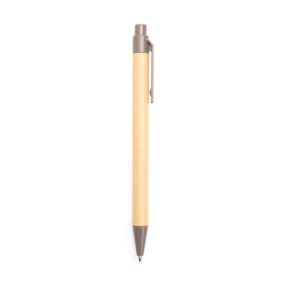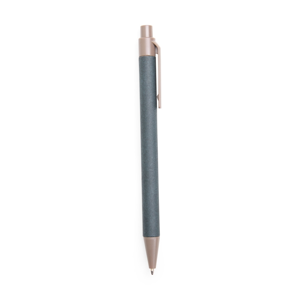 Caneta personalizada com corpo em papelão e detalhes em plástico ABS na ponteira e no clipe. Possui acionamento por clique e carga esferográfica azul de ponta 1,0 mm, oferecendo escrita leve e confortável. Uma opção prática e sustentável para o dia a dia. Largura : 1,3 cm Comprimento : 13,8 cm