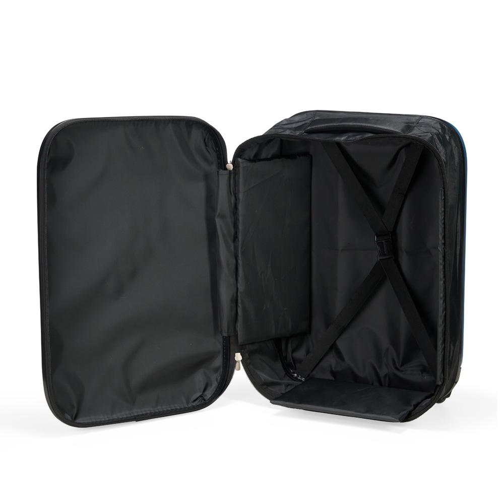 Mala de viagem personalizada, modelo expansível, desenvolvida em ABS com bordas em poliéster, garantindo leveza e resistência durante o uso. Quando expandida, oferece capacidade total de até 40 litros, ideal para viagens curtas ou médias. Seu interior conta com forro em poliéster 210D, cinta compressora para manter roupas organizadas e placas rígidas em PVC, que preservam a estrutura da mala quando aberta. O deslocamento é facilitado pelas duas rodinhas e pela alça retrátil em alumínio com puxador em plástico. Acompanha ainda faixa em poliéster com parte elástica, perfeita para manter a mala compacta quando dobrada. Altura : 55 cm Largura : 36,5 cm Profundidade : 18 cm