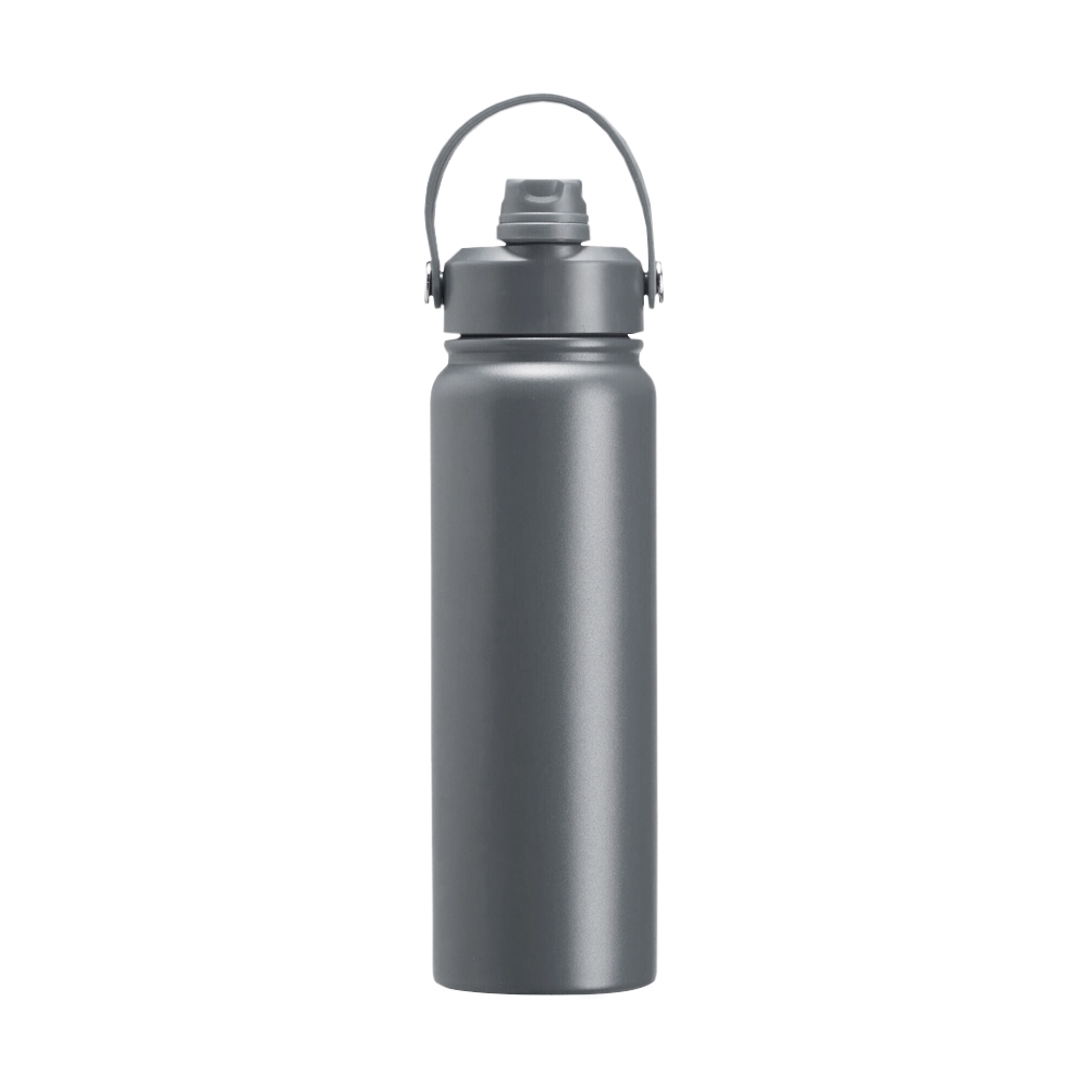 Garrafa térmica personalizada em inox com pintura eletrostática e capacidade de até 800ml. Conta com estrutura interna de parede dupla em inox 304 e vedação a vácuo, que ajudam a manter a temperatura das bebidas por mais tempo. Apresenta tampa rosqueável em plástico com proteção para o bocal, bico flip, canudo interno removível e alça fixa maleável, que facilita o transporte no dia a dia. Altura : 28 cm Largura : 8,2 cm Circunferência : 25,1cm