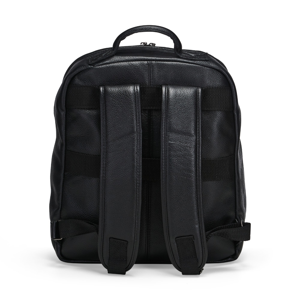 Mochila personalizada confeccionada em couro, com revestimento interno em poliéster, fechamento em zíper e capacidade máxima de 14 litros. Conta com divisória interna para notebook de até 14 polegadas, bolso frontal com zíper, alça superior reforçada e alças traseiras ajustáveis com revestimento acolchoado. Possui ainda faixa de engate em nylon para acoplar em malas. Acompanha plaquinha em couro flexível presa a cordão de nylon. Altura : 38 cm Largura : 32 cm Profundidade : 10 cm
