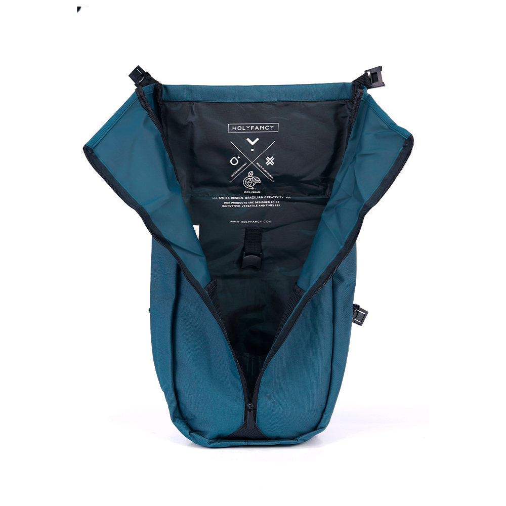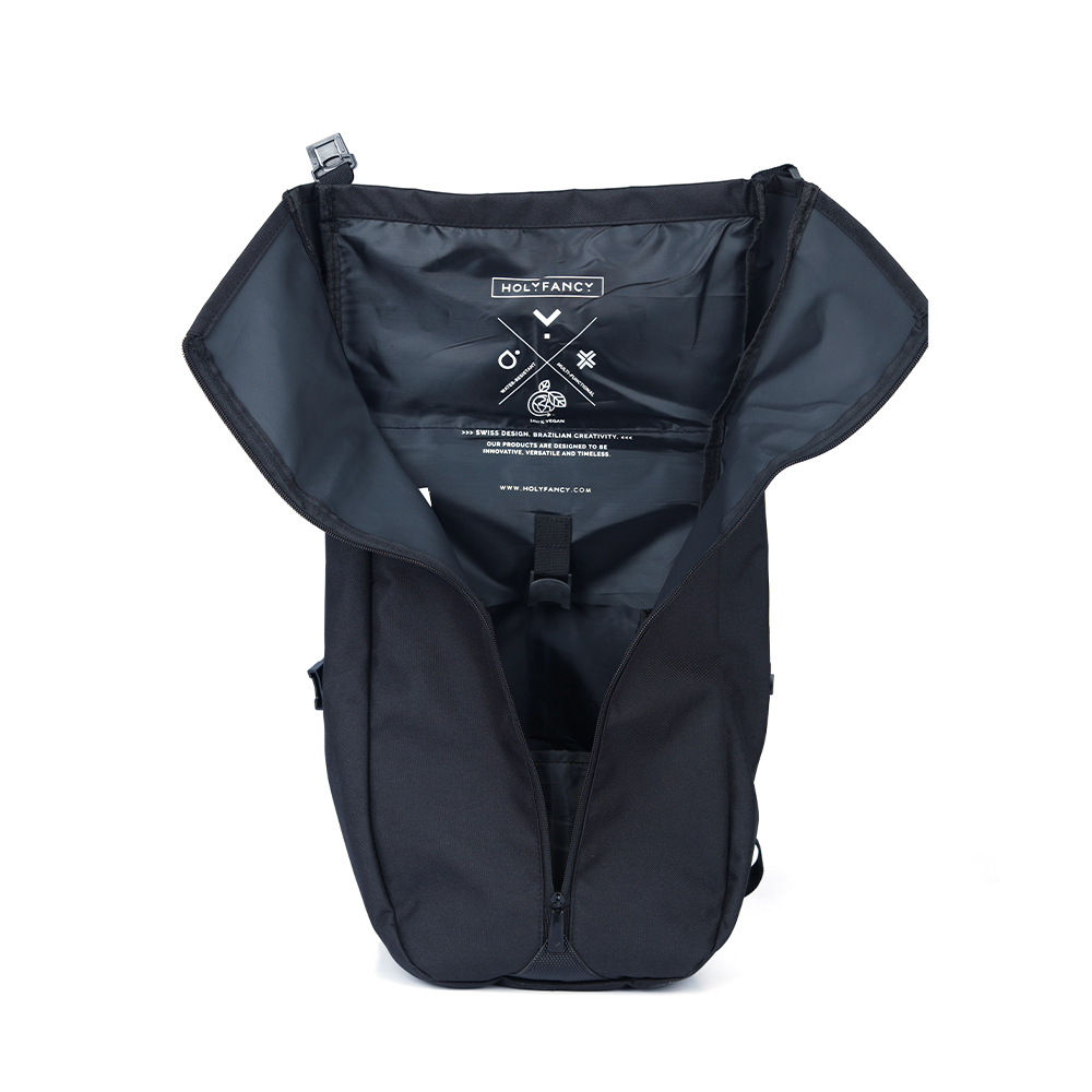 Mochila personalizada confeccionada em poliéster, com zíper invertido. Possui puxadores em metal, costado personalizado e dois modos de uso, oferecendo versatilidade e acabamento diferenciado. Medidas aproximadas: 44x31x8cm