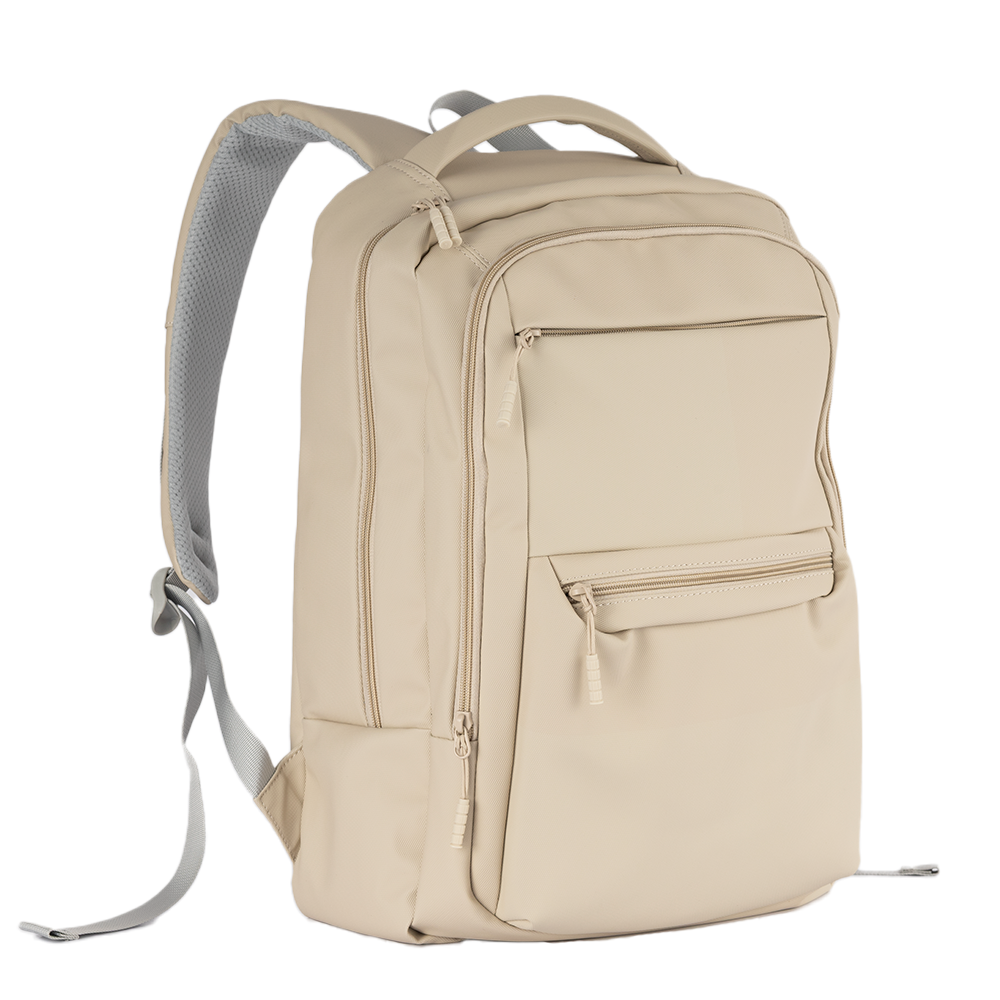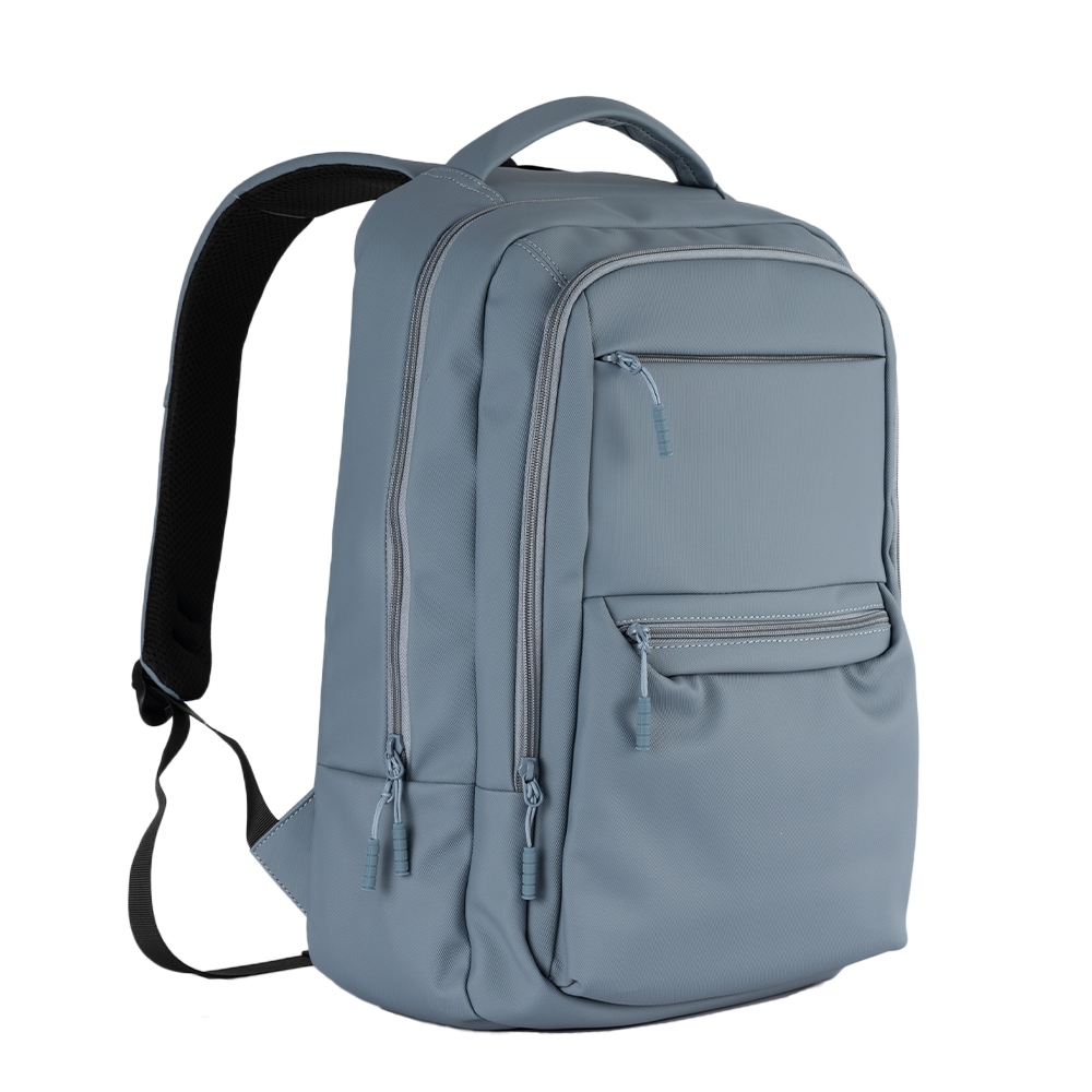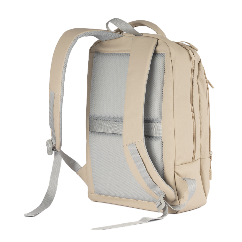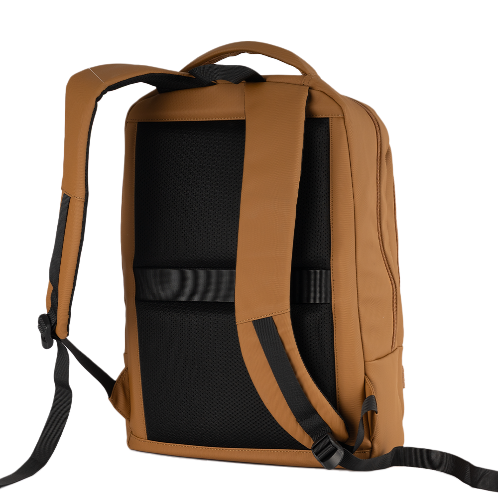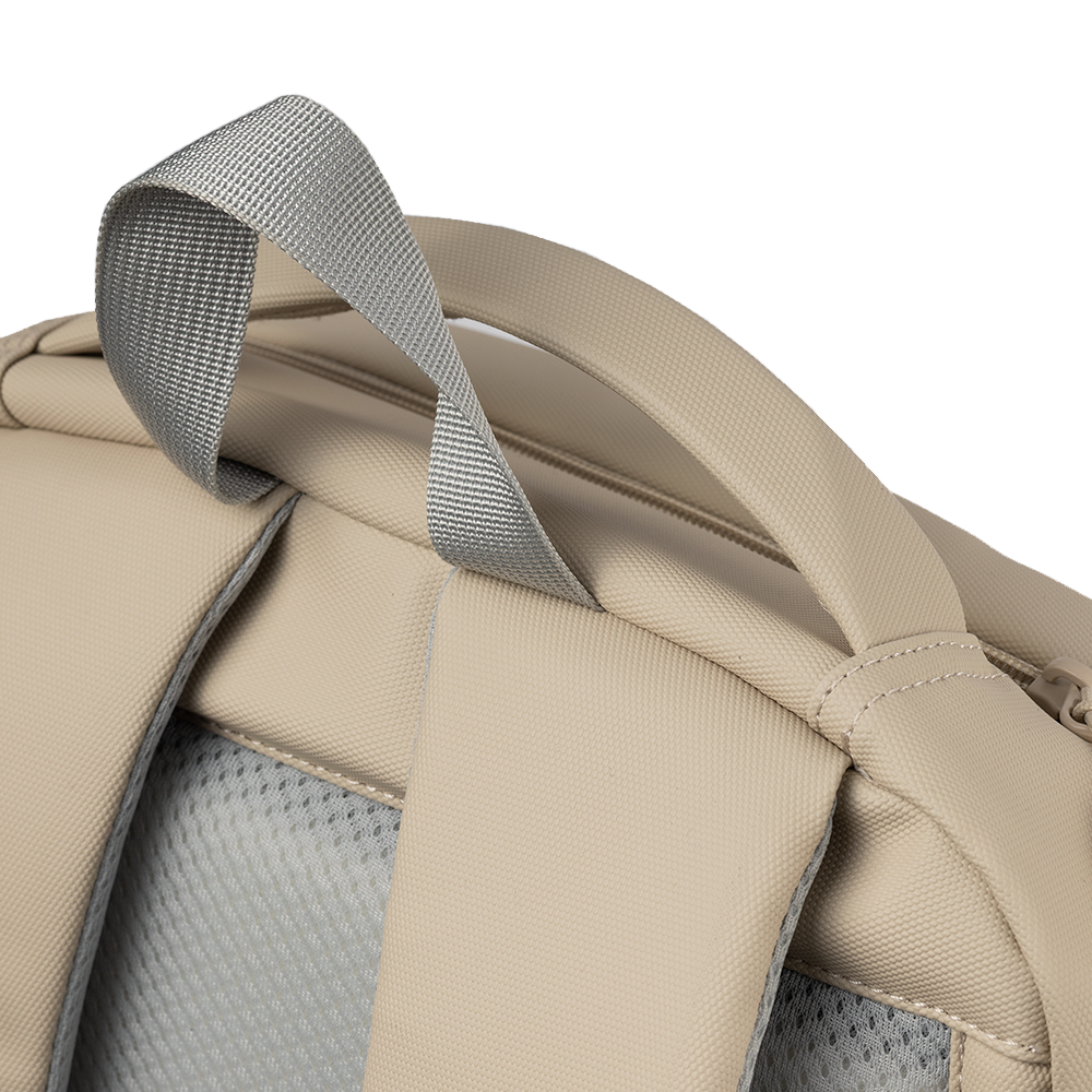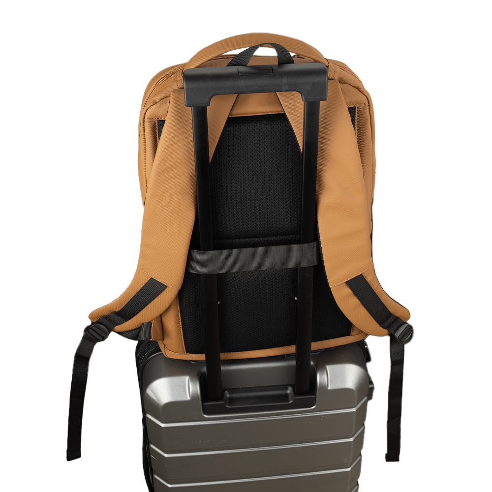 Mochila Move Plus personalizada, confeccionada em material PU resistente à água. Possui compartimento para notebook de até 16", costas e alças com proteção antitranspirante, além de alça de mão rígida e anatômica. Conta também com tira traseira, que permite acoplar a mochila com segurança à alça de uma mala de bordo, facilitando o transporte em viagens.